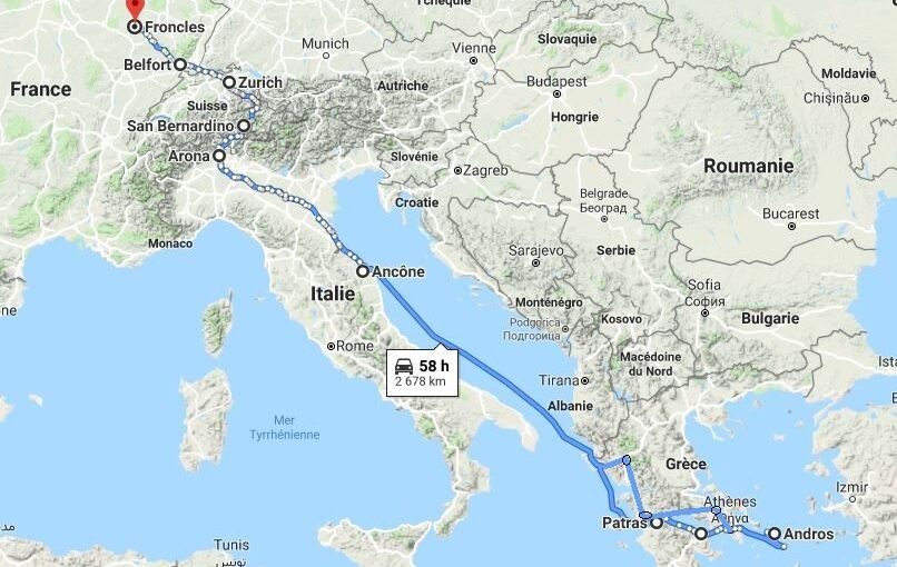 Du 11 juillet au 12 août j’ai donc parcouru 7000 km entre la France et la Grèce en passant par la Suisse, l’Allemagne, et l’Italie. J’ai pédalé pendant environ 1500 km.